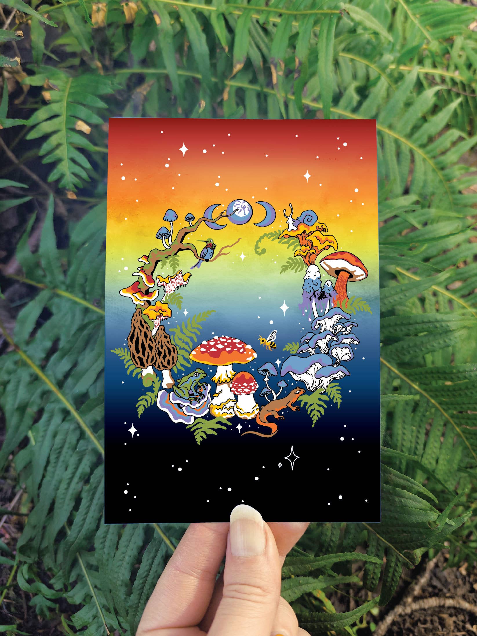En combinant des visuels vibrants avec un optimisme sauvage, ces illustrations à l'aquarelle sont peintes dans mon carnet de croquis, soulignées à la plume et à l'encre et réveillées par plusieurs lavis de couleur. Imprimées sur du papier cartonné velours épais de 18pt et emballées dans une pochette transparente compostable en PLA dérivé de plantes. Chaque impression à l'aquarelle est au format standard 4" x 6" pour un encadrement pratique. Ce format est un best-seller pour moi car j'ai vu des clients demander des impressions d'art plus petites qui prennent moins de place. • Mini impression 4x6 sur papier cartonné velours • Emballage compostable • Art peint à la main inspiré du PNW