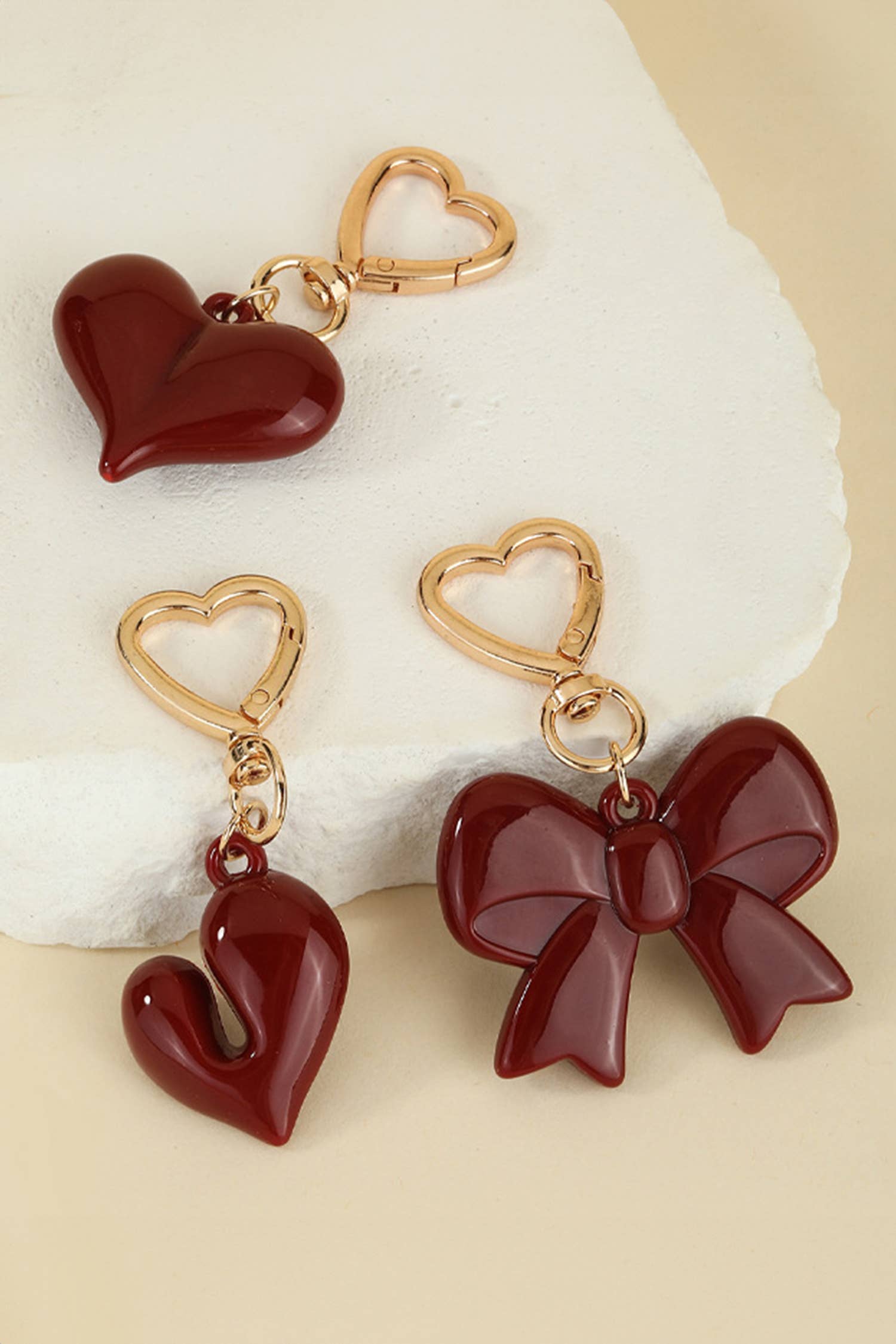 Porte-clés breloque de sac avec nœud en perles, pointe et pendentif cœur.