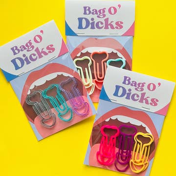 Nous avons pris notre populaire Cockclip™, l'avons réduit à une taille de 2 pouces, en avons mis six dans un sac et avons créé le Sac de Zizis ! Parfait pour garnir un bas de Noël, offrir à vos meilleurs amis du travail, comme cadeau anonyme pour votre cher patron, ou comme excuse pour enfin organiser certains de ces papiers sur votre bureau ! Profitez-en en trois variétés de couleurs différentes : pastel, coucher de soleil et fantaisie. Goûtez l'arc-en-ciel.