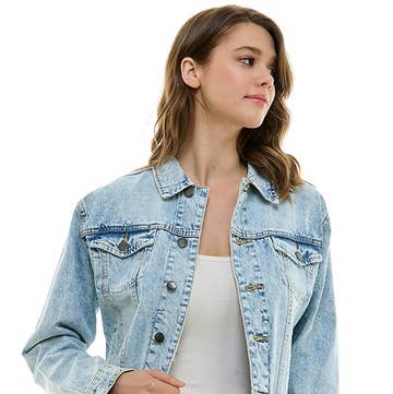 Oeuvre originale unique en son genre sur une veste en jean utilisant de l'encre végétalienne écologique. Tableau des tailles