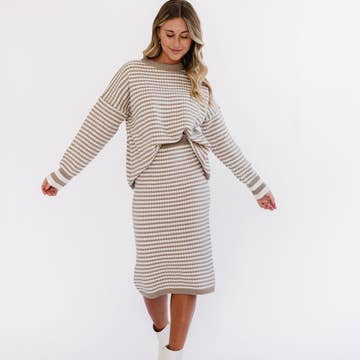 Pull en deux pièces à manches lanterne et jupe moulante en vente B2B
