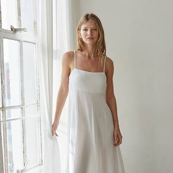 Robe midi en coton brodé avec lien à nouer dans le dos en vente B2B
