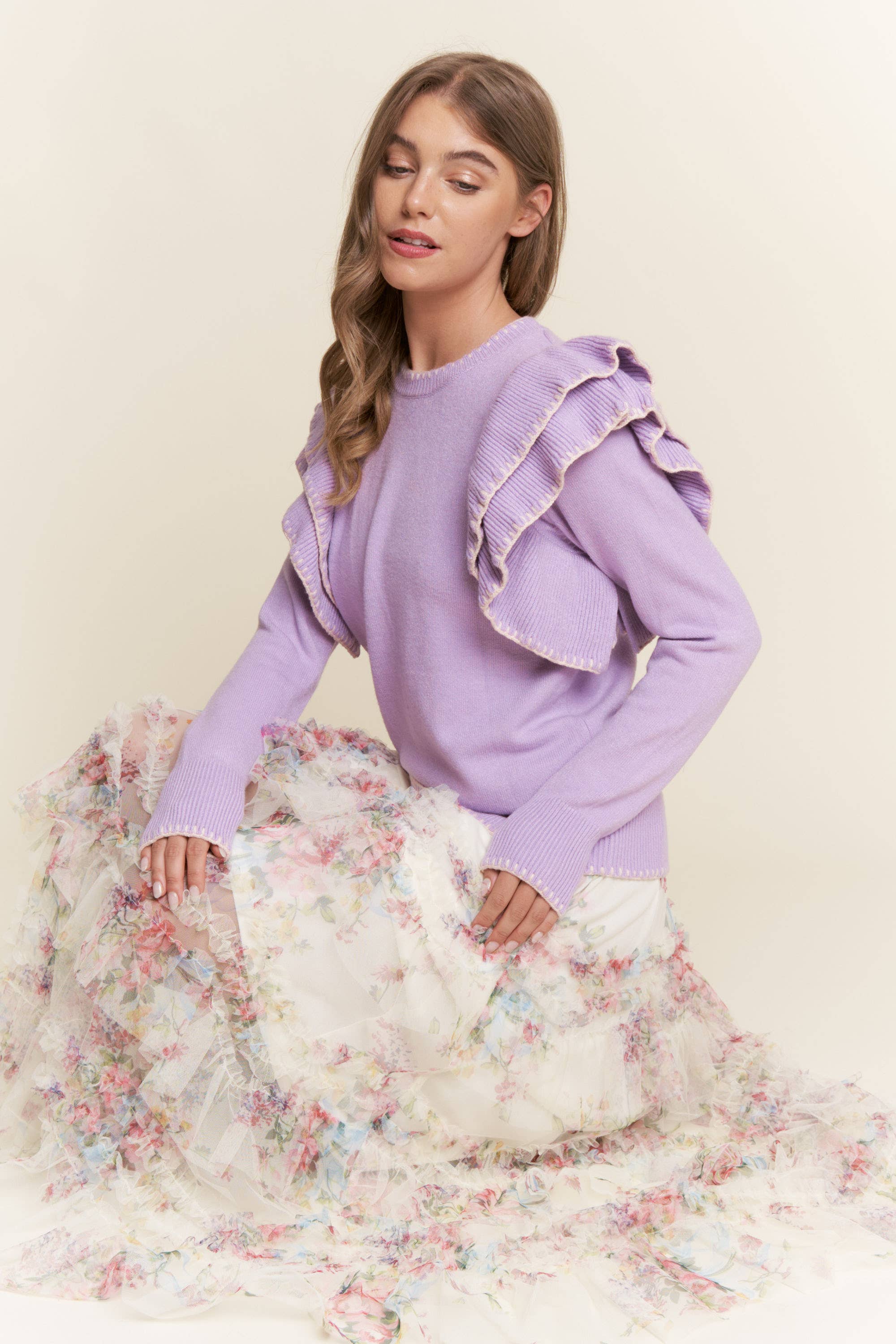 HAUT EN TISSU TEXTURÉ AVEC DÉTAIL VOLANTÉ EN VENTE B2B