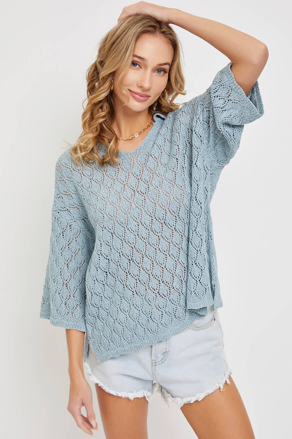 Ce haut patchwork mélange des textures douces avec des appliqués floraux délicats en crochet et des accents de volants. Conçu avec une coupe décontractée et des panneaux de tissus mélangés, il offre une sensation charmante et artisanale parfaite pour les acheteurs de boutiques. Léger et polyvalent, il se marie facilement avec un jean ou une jupe pour un look décontracté mais raffiné, en faisant un ajout accrocheur aux collections contemporaines. TO 100%POLYESTER TO 100%POLYESTER Le modèle porte une taille Small Taille : 5'10" Buste : 34 Taille : 25” Hanches : 3