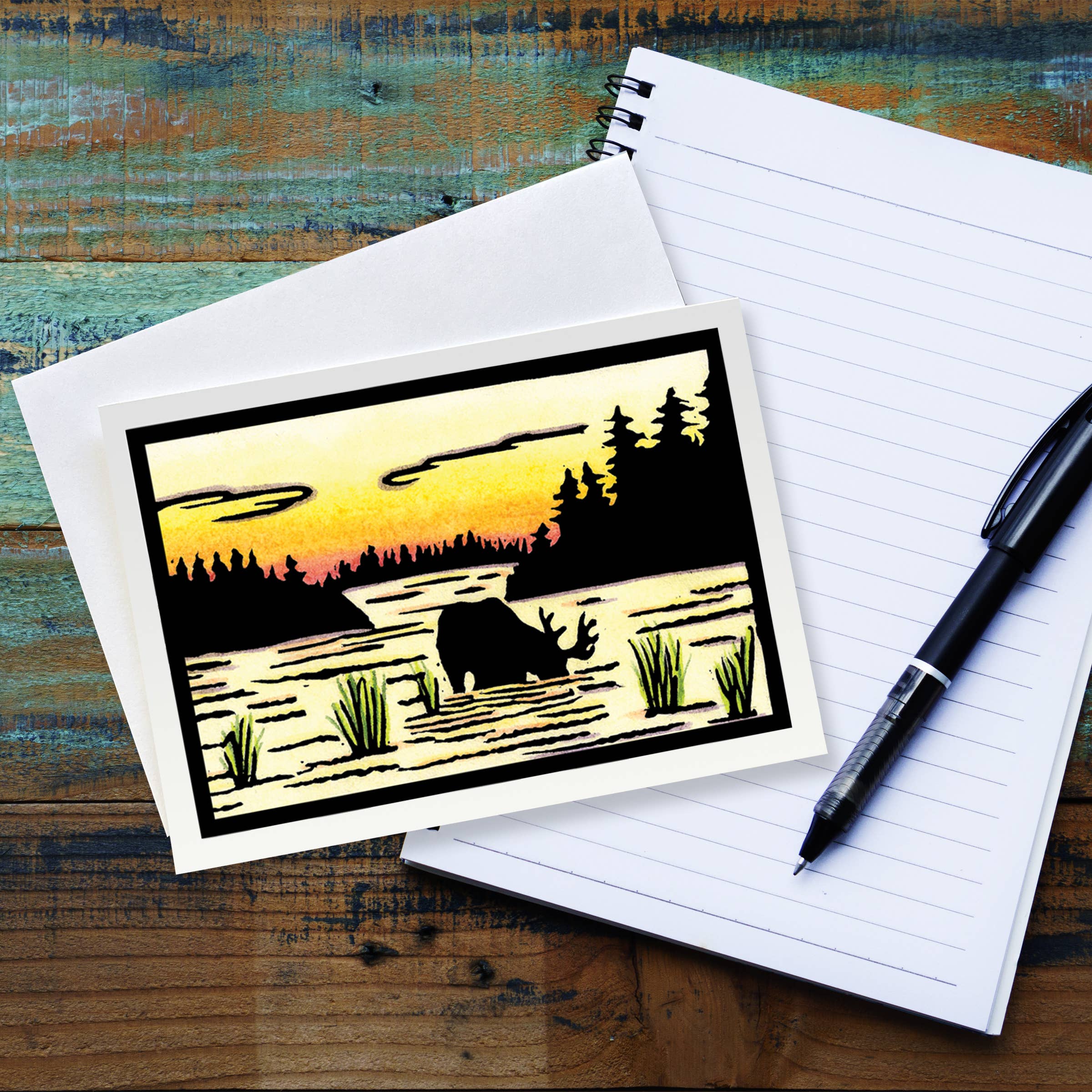 Vous cherchez une carte de vœux unique et belle, à la fois écologique et fabriquée localement ? Vous êtes au bon endroit ! Ces cartes de vœux vierges sont au format standard A6 avec des enveloppes blanches. Chaque carte est une reproduction d'une des gravures intemporelles sur bois de Nan Onkka. La gravure originale a été sculptée à la main par Nan dans son atelier à domicile à Grand Marais, Minnesota. Son talent artistique et son souci du détail se reflètent dans chaque carte, les rendant vraiment uniques. Que vous célébriez un événement marquant, que vous pleuriez une perte ou que vous disiez simplement bonjour, ces cartes vierges sont parfaites à avoir sous la main pour toute occasion. Chaque carte de vœux est imprimée en utilisant des méthodes offset durables par un imprimeur certifié écologique au Minnesota. La carte A6 mesure 4,5 x 6,25" et est accompagnée d'une enveloppe blanche assortie. L'extérieur de la carte présente une finition satinée sophistiquée, tandis que l'intérieur non couché offre une surface lisse facile à écrire. La pochette éco transparente optionnelle est dérivée de PLA (acide polylactique) d'origine végétale et est certifiée compostable. Détails : * Carte A6 vierge unique (4,5 x 6,25") avec enveloppe blanche assortie * Imprimée professionnellement sur papier blanc 340gsm - Finition satinée à l'extérieur ; intérieur non couché (facile à écrire !) * Imprimée localement au Minnesota par un imprimeur certifié écologique * Papier et emballage écologiques ! Prix de vente conseillé : 5,00 $ (avec pochette éco transparente) / 4,75 $ (sans pochette éco transparente) Mots-clés : Promenade, Marche, Balade, Bouleau, Tremble, Peuplier, Pin, Épicéa, Sapin, Mélèze, Cèdre, Érable, Chêne, Prairie, Fleurs sauvages, Fleur, Forêt, Nord, Forêt boréale, Minnesota, Wisconsin, Michigan, Péninsule supérieure, Illinois, Maine, New Hampshire, Vermont, Massachusetts, Nouvelle-Angleterre, Pennsylvanie, Ohio, Indiana, Virginie, Kentucky, Tennessee, Caroline du Nord, Iowa, Colorado, Californie, Oregon, Washington, Texas, Ontario, Canada, Manitoba, Grand Marais, Côte Nord, Fabriqué au Minnesota, Artiste femme, Propriété féminine, Gravure, Calme, Paix, Pastoral, Encouragement, Deuil, Campagne, Environnemental, Hiver, Printemps, Été, Automne, Camping, Boundary Waters, BWCA, Forêt nationale, Parc national, Lac Supérieur, Lac Michigan, Grands Lacs, Mississippi, Canoë, Kayak, Randonnée, Sac à dos, Sentier, Racines, Montagnes, Vélo, Plage, Plein air, Nature, Sympathie, Encouragement, Coucher de soleil, Lever de soleil, Rivage, Côte, Canoéiste, Pagaie, Pagayage, Nénuphars, Nénuphar, Nénuphars, Pêche, Aventure.