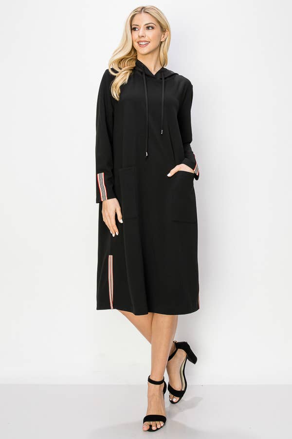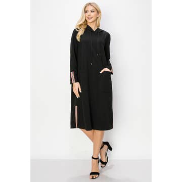 Tunique/robe à capuche à manches longues de couleur unie avec poches latérales
