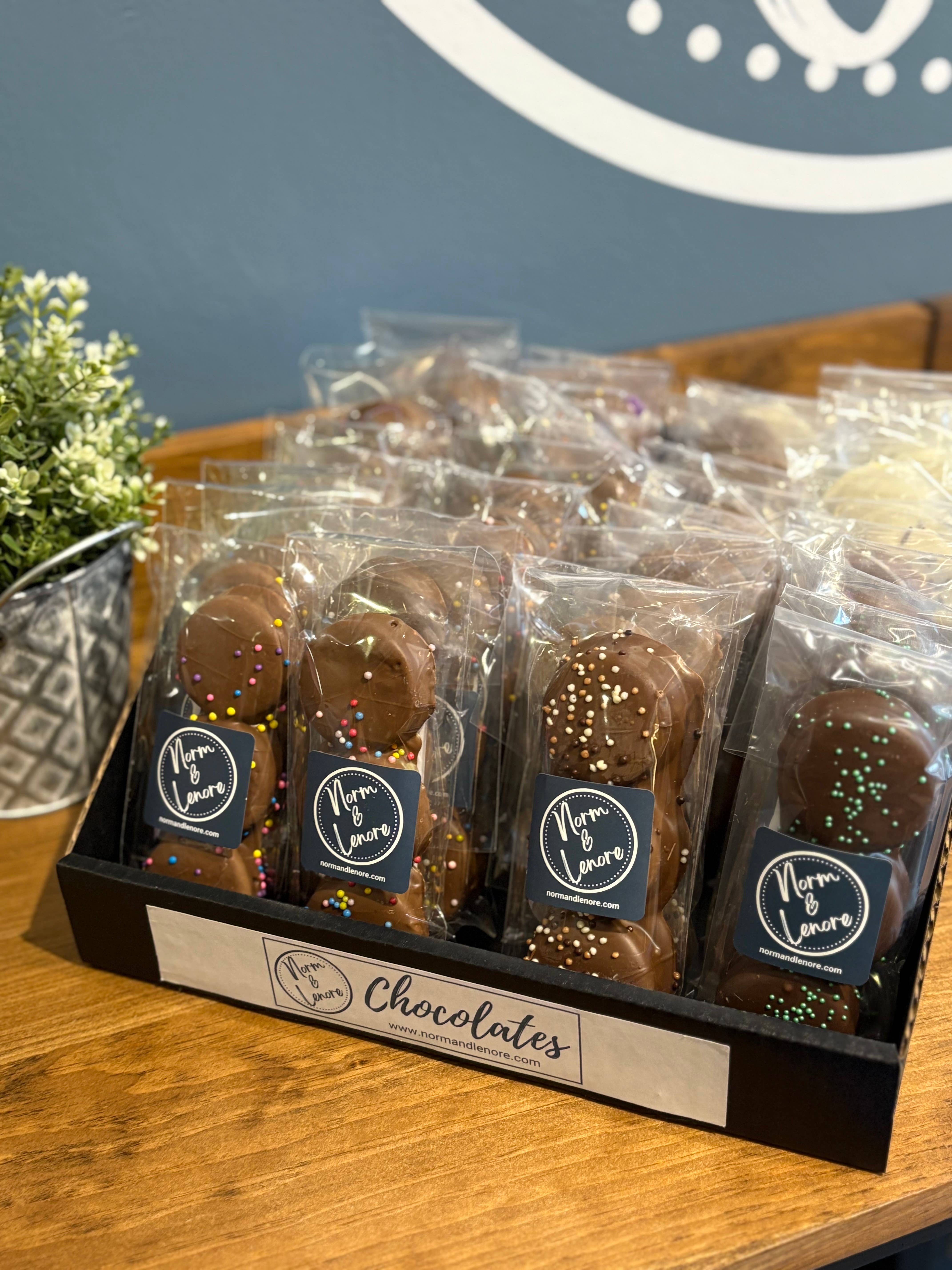 Assortiment complet de chocolats. Contient des fondants, des grappes, des caramels, des crèmes, des coupes de beurre de cacahuète, des truffes et plus encore. 5pcs : Poids : 0,21 lb. Taille : 8,5" x 2" x 1,25" 12pcs : Poids : 0,45 lb. Taille : 7" x 4,5" x 1,25" 16pcs : Poids : 0,65 lb. Taille : 6" x 6" x 1,25" 24pcs : Poids : 0,95 lb. Taille : 9,5" x 6" x 1,25"