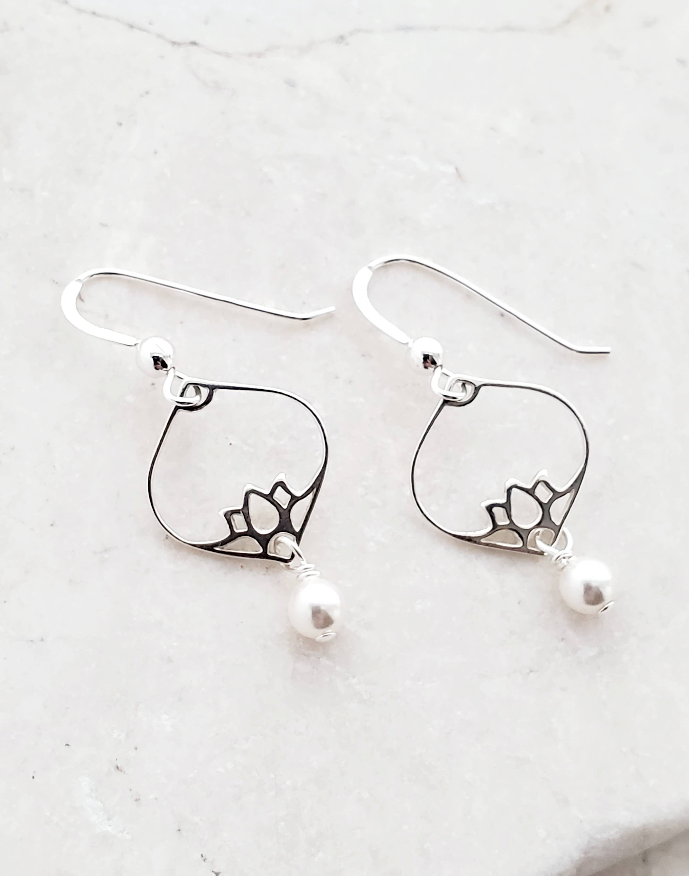 Maille de chaîne moderne d'inspiration botanique avec une touche de style Art Nouveau : matériel d'ingénierie en acier inoxydable relié à la main avec du titane ; fils d'oreille en titane hypoallergéniques ; 2,25 pouces de long. Fabrication artisanale sur commande, États-Unis.