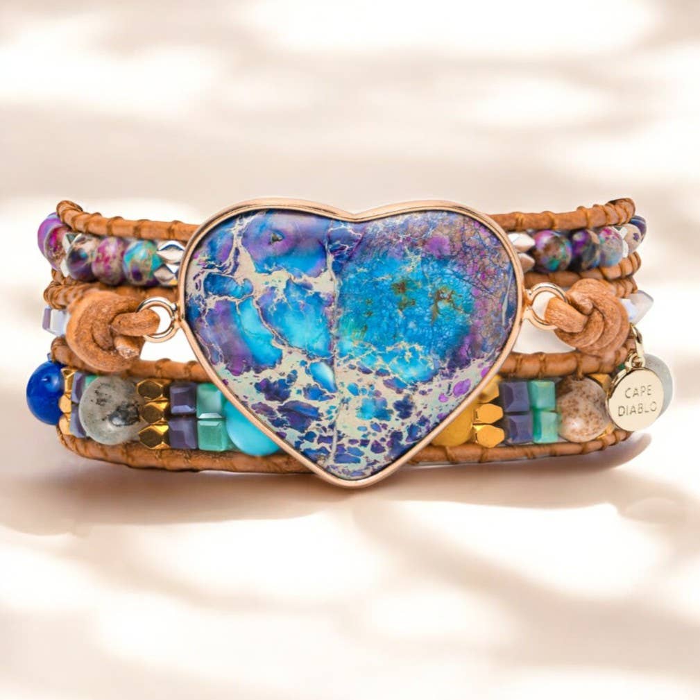 Bracelet enroulé à perles cœur en labradorite en vente B2B