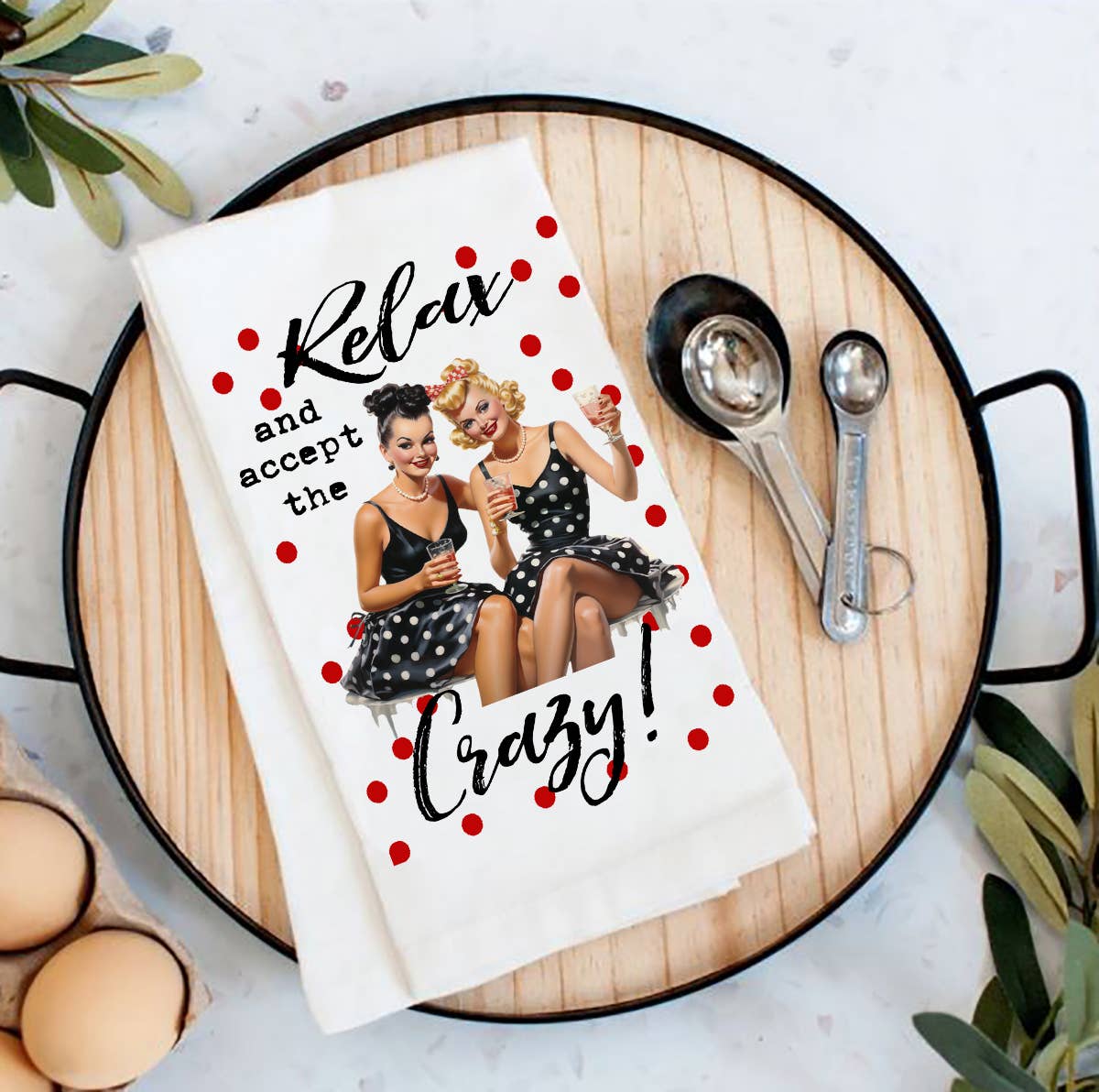 Joli torchon rétro, « Dans cette famille, on ne se cache pas comme des fous. Nous l'avons mis sur le porche et lui avons offert un cocktail. » Superbes objets à emporter sur le comptoir !