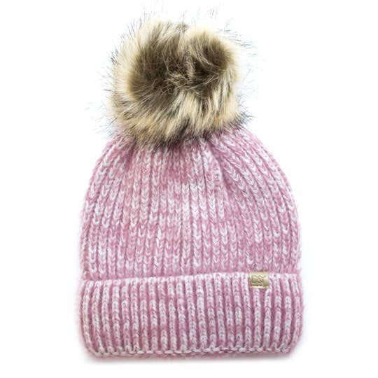 Bonnet à pompon en fausse fourrure New Era, avec écusson personnalisé en similicuir en vente B2B
