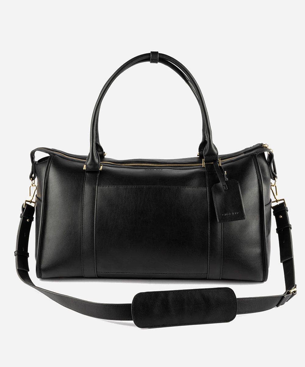 Vous quittez la ville pour un voyage rapide ? Ce sac de sport en cuir doux et beurré répond aux réglementations des compagnies aériennes en matière de bagages à main tout en conservant vos affaires. L'intérieur est entièrement doublé avec une petite poche zippée. Comprend des pieds de protection en laiton et une bandoulière réglable/détachable. Hourra pour le week-end ! <br>