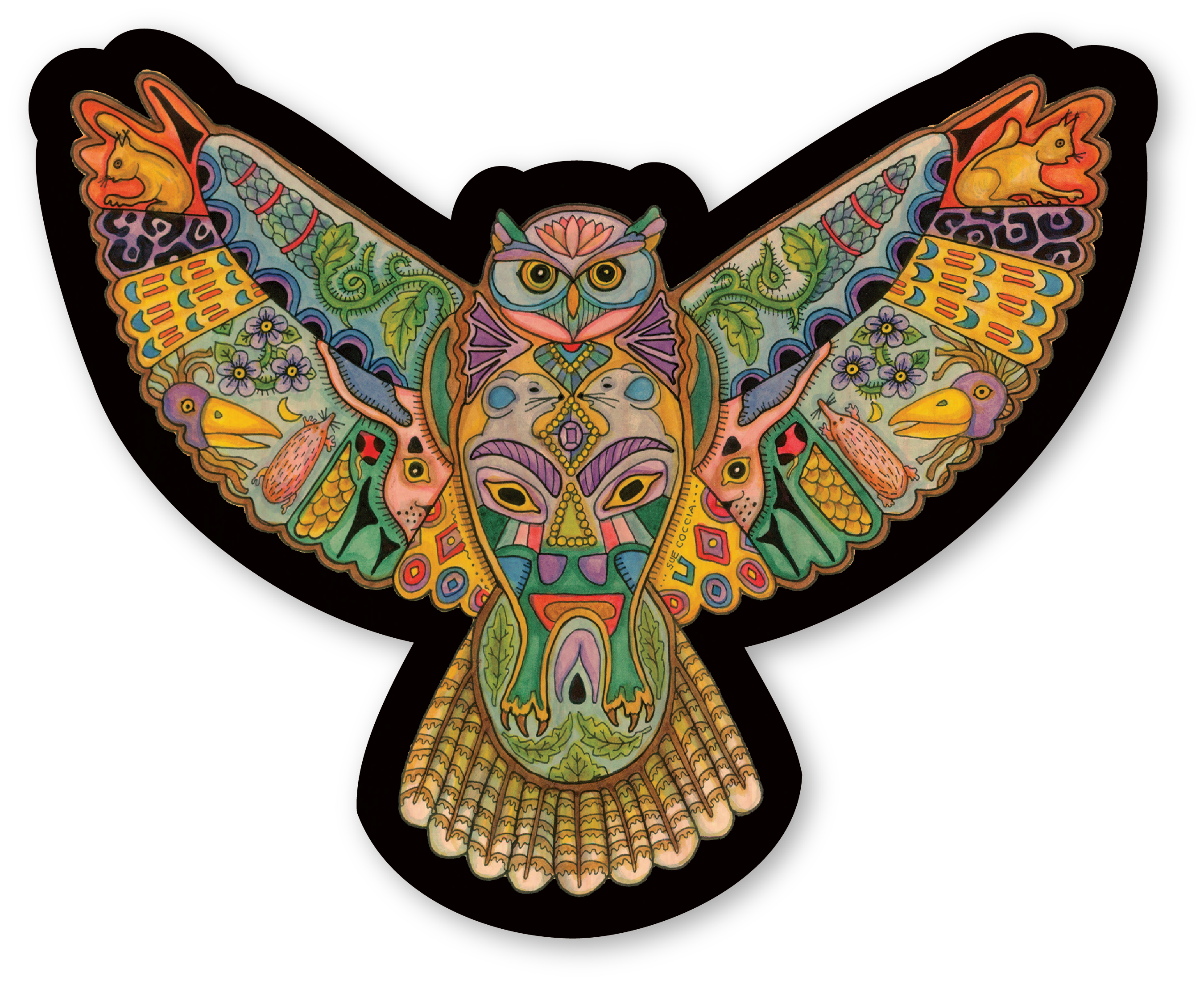 Autocollant holographique représentant une chouette cornue