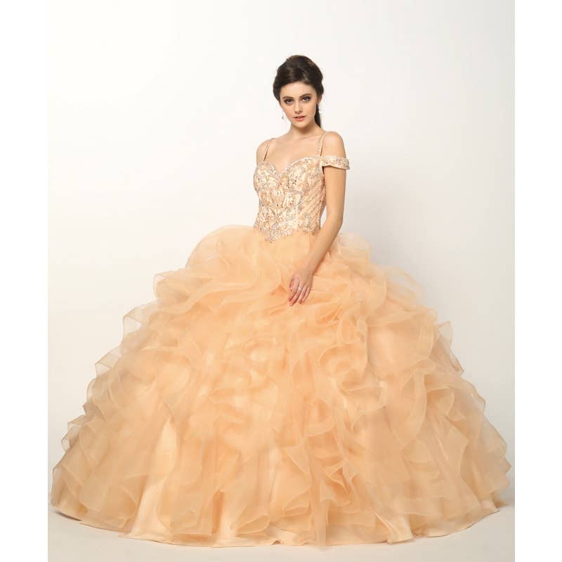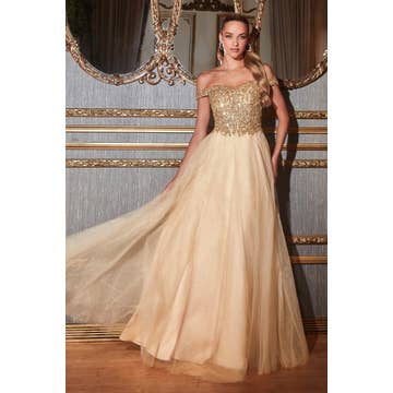 LK224 Épaule dénudée Embellissements dorés Long train Corset Dos La LK224 est le choix idéal pour ceux qui recherchent une robe alliant harmonieusement sophistication et détails luxueux. Élégance intemporelle avec son design à deux couches, sa silhouette à épaules dénudées et ses somptueux ornements dorés, le dos du corset assure un ajustement parfait, avec une longue traîne en cascade derrière vous dans une splendeur royale.