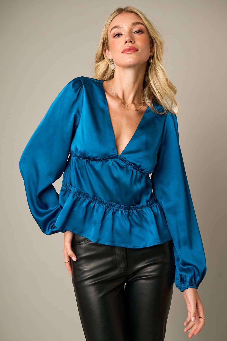 Blouse péplum en velours côtelé à manches longues et nœud papillon sur le devant - 44762T-1 en vente B2B