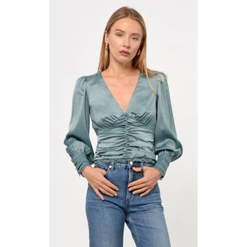 Blouse abstraite à manches longues et col en V et revers smockés - 44649T