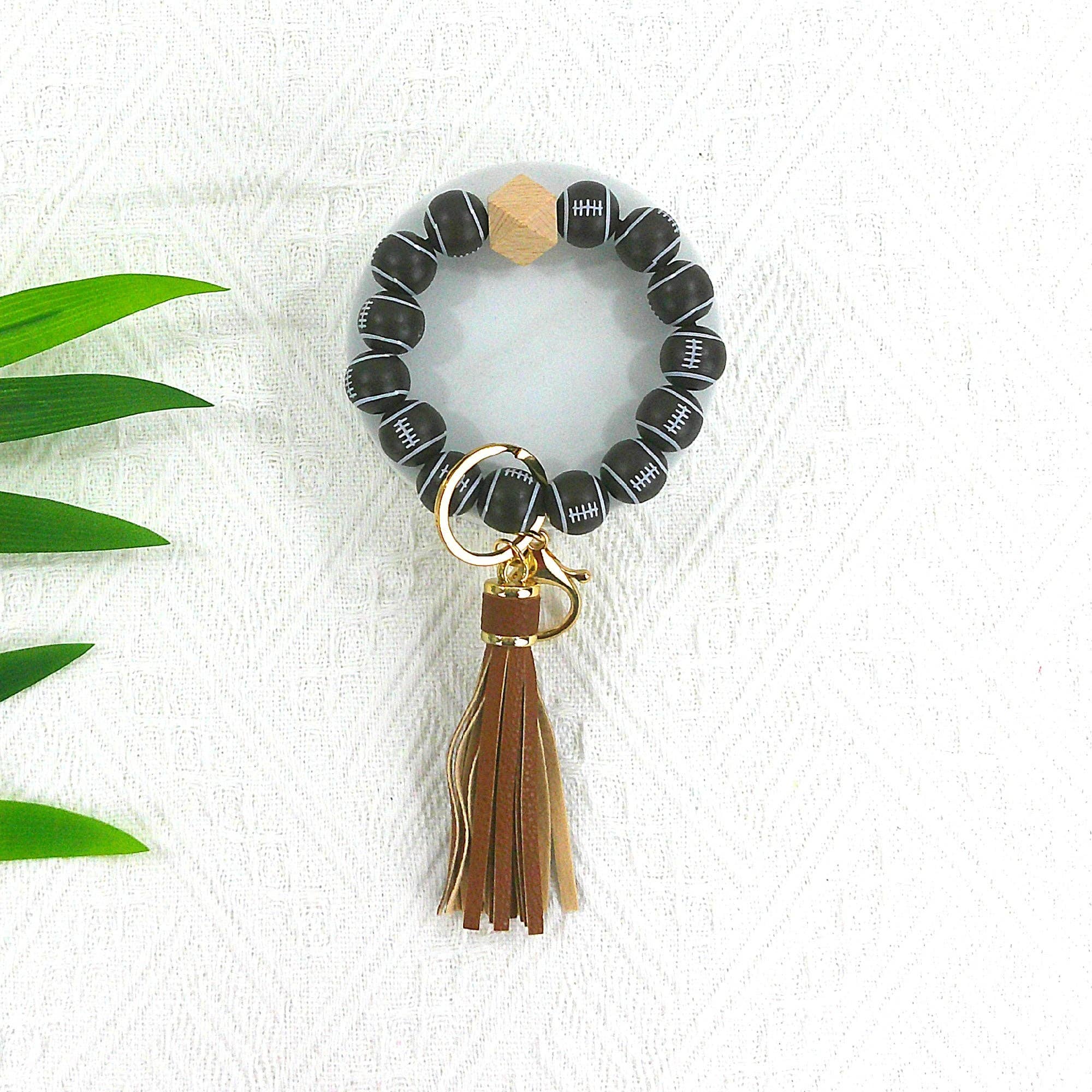 Bracelets porte-clés en silicone en perles de léopard avec bois clair de 2 pouces en vente B2B