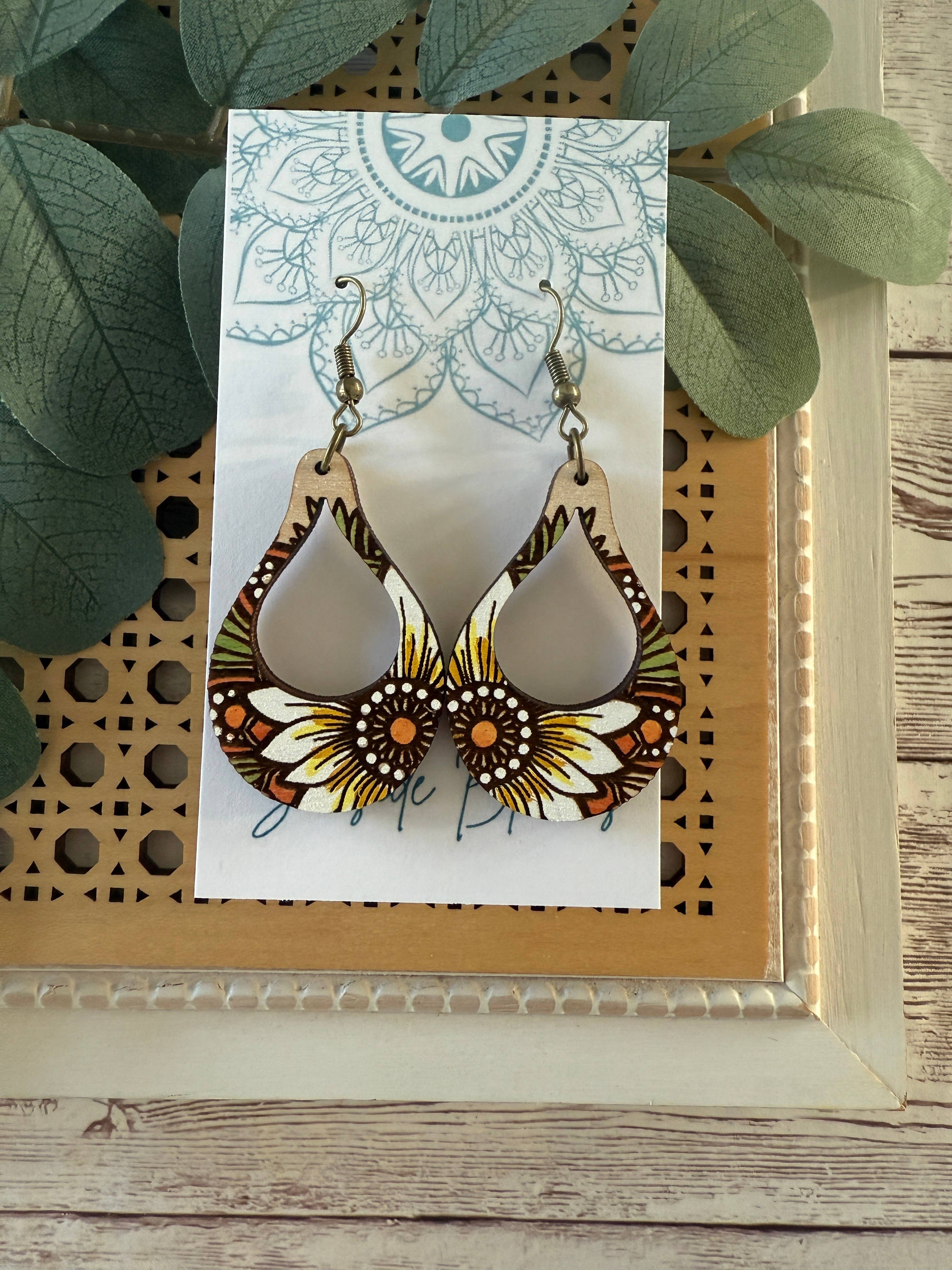 Boucles d'oreilles d'automne en bois léopard et citrouille