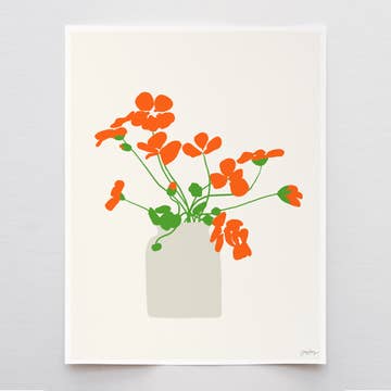 Impression d'art de qualité muséale réalisée sur du papier mat épais. Imprimé par l'artiste à Portland, Oregon. Livré dans un étui en plastique transparent avec un support solide. Chaque tirage est estampillé au dos avec les informations de l'artiste. Vos clients peuvent encadrer leurs tirages, les épingler directement au mur ou les accrocher à un porte-affiche en bois ! Mots-clés : affiche, illustration, fleurs, tulipes, printemps, orange, vert, cuisine, bleu, jaune, été, rose