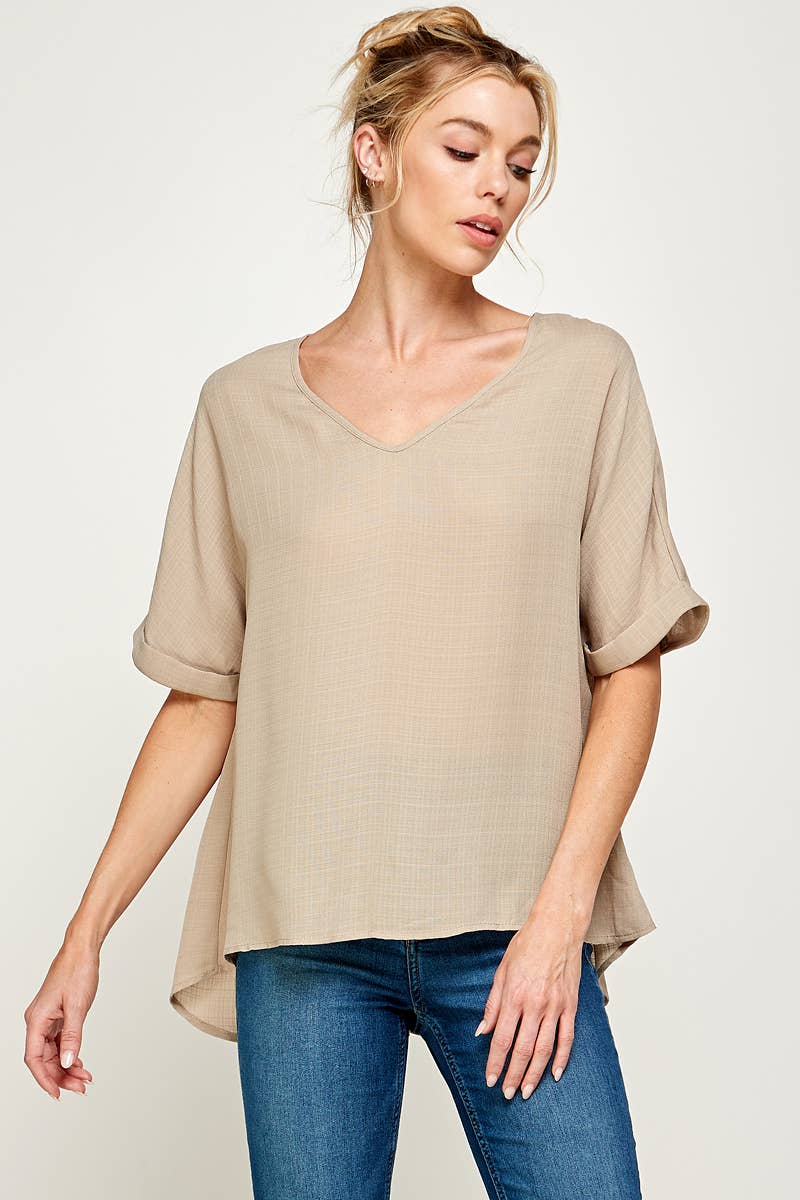 Haut à manches courtes et col en V tissé Airflow