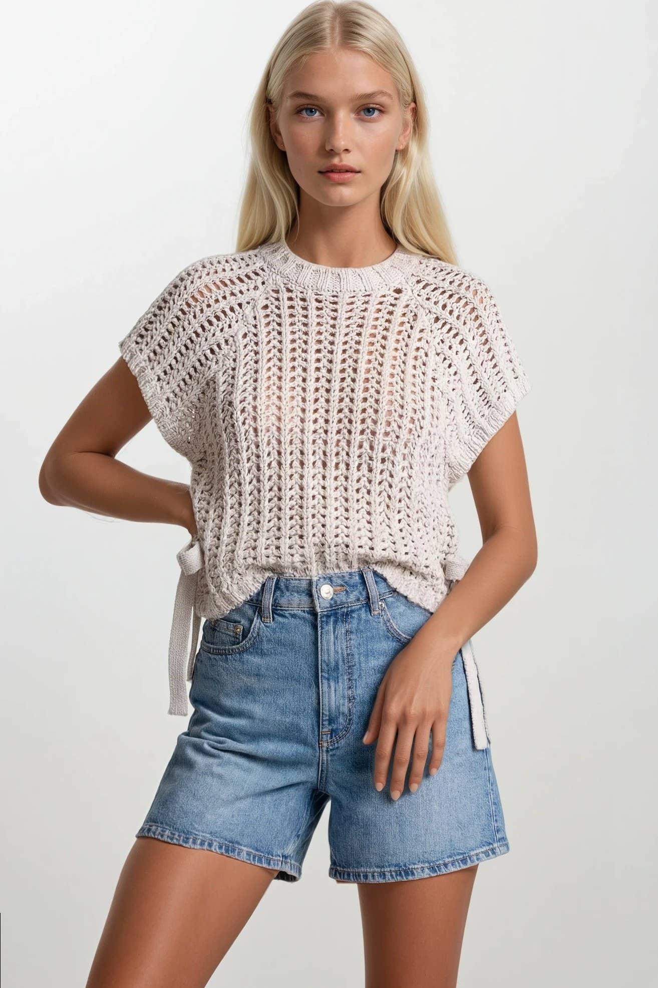 Top décontracté en maille flammée à manches ballon oversize EN SOLDES