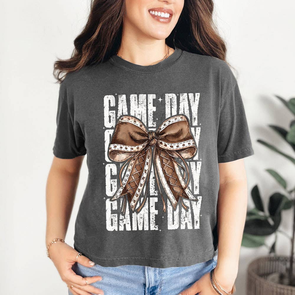 t-shirt de jour de match noir orange blanc, t-shirt graphique de football, t-shirt avec nœud de pom-pom girl, t-shirt de football d'automne, t-shirt graphique teint en vêtement de jour de match universitaire. *T-shirt unisexe Comfort Colors Heavyweight* Teint en vêtement pour une sensation douce et usée avec un rétrécissement minimal. Coupe décontractée avec un col rond classique, col en côte surpiqué et bande de renfort d'épaule à épaule pour la durabilité. Parfait pour les réunions de famille, les fêtes d'anniversaire, les concerts et les festivals. Design graphique imprimé DTF de haute qualité pour des impressions vibrantes et durables. 100% COTON Fabriqué au HONDURAS