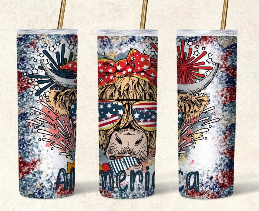 Gobelet skinny Star & Stripes Highland Cow de 20 oz en vente B2B