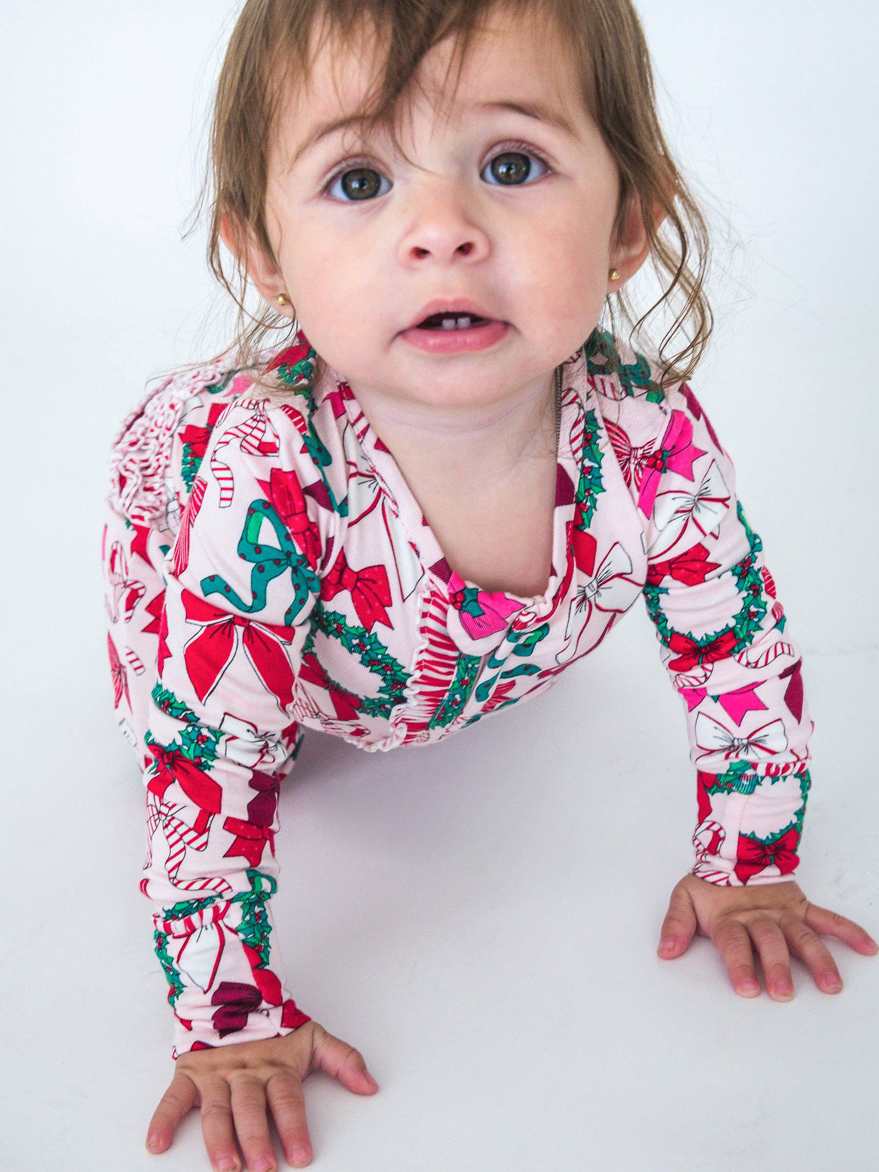 Ensemble de pyjama à volants avec boutons et manches longues SoftSnooze™ pour filles avec nœuds Holly en vente B2B