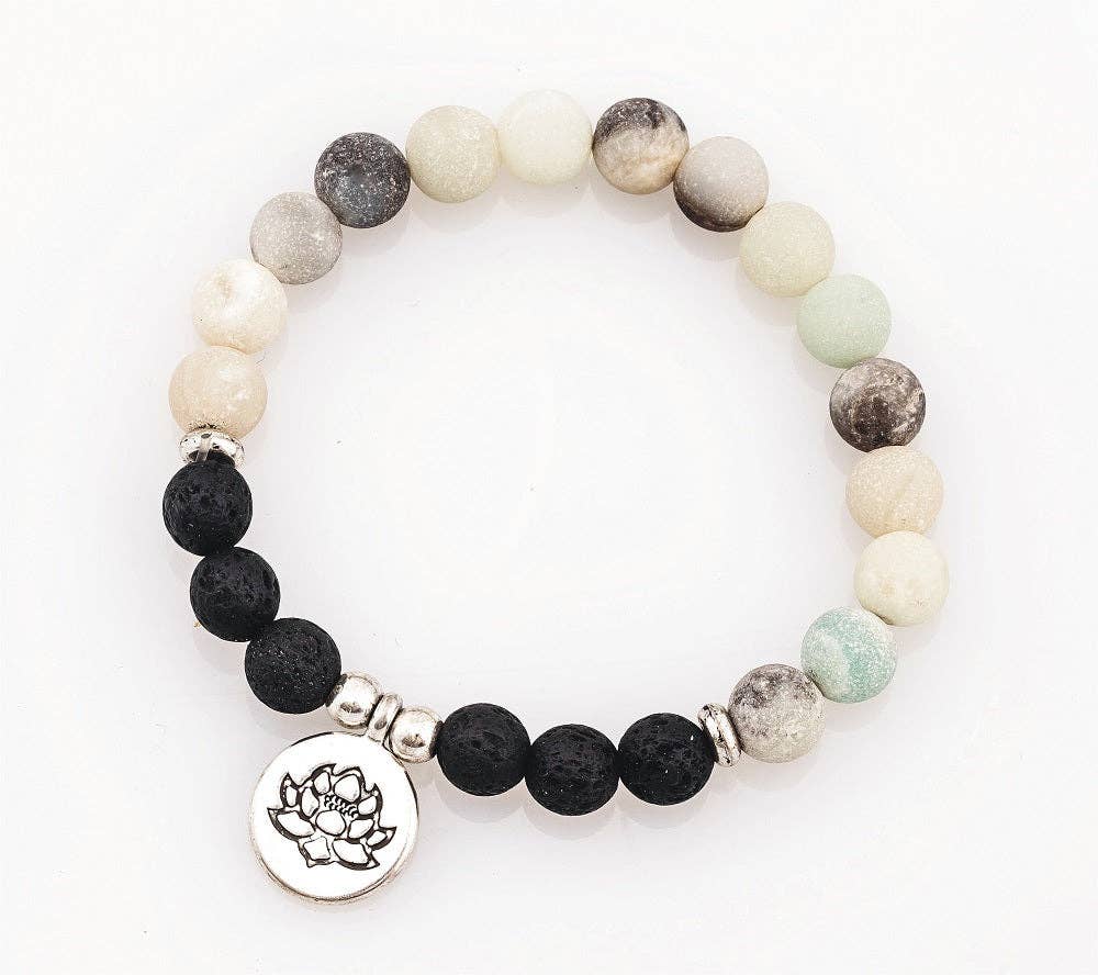 De belles pierres précieuses véritables composent ce bracelet en marbre et bois de rose pour une vie saine, paisible et équilibrée. Ajoutez une goutte d'huile essentielle aux perles de bois de rose pour avoir votre propre bracelet diffuseur personnel et profitez de vos arômes relaxants tout au long de la journée ! Bracelet élastique 7,5 »