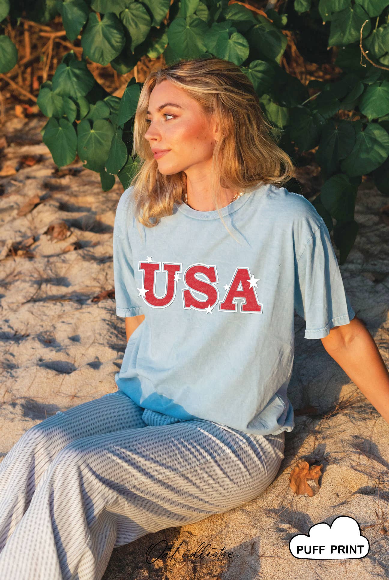 T1492BA Top court surdimensionné à motif « Texas »