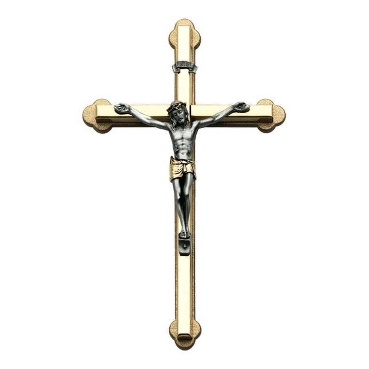 BA68411 - Crucifix brésilien argenté en bois de Benoît avec support