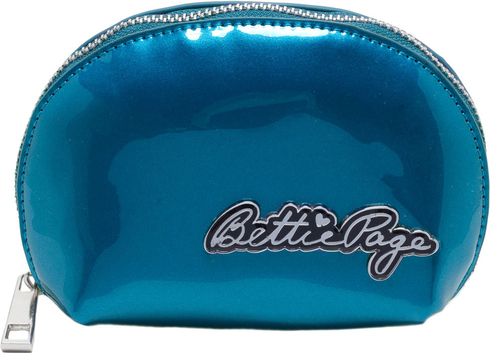 Fabriquée en vinyle super brillant avec une fermeture éclair sur le dessus, cette trousse de la taille d'une main comprend une plaque métallique avec le logo Bettie Page et une doublure en tissu imprimé. C'est l'endroit parfait pour ranger toutes vos petites nécessités. Dimensions : 15,2 cm x 10,2 cm x 4,4 cm Matériau : vinyle
