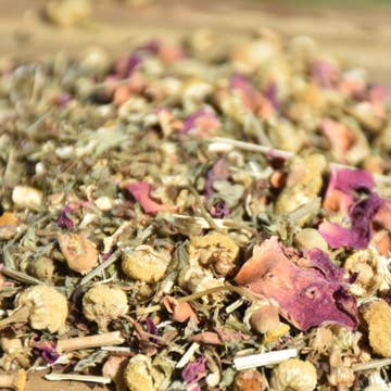Un mélange du soir pour favoriser un état de calme pour le repos, le sommeil ou le travail onirique. * Ingrédients : Scutellaire, avoine, menthe poivrée, armoise, camomille, damiana, écorce d'orange et bleuet * Sans caféine * Saveur : Début rafraîchissant à la menthe avec une finition florale terreuse * Infusion : Utilisez 1-2 c. à café pour infuser une tasse. Versez de l'eau frémissante sur le thé et laissez infuser 4-8 minutes. Filtrez et savourez ! Emballage de vente au détail : Échantillons (4 portions) - Pochette compostable, refermable, transparente et kraft, trou de suspension, étiquette avec ingrédients, instructions et code UPC. Grandes pochettes (15-20 portions) - Pochette kraft compostable, refermable, debout avec fenêtre transparente, trou de suspension, étiquette avec ingrédients, instructions et code UPC. Testeur : Pochette format échantillon