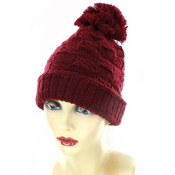 Bonnet d'hiver à pompon en tricot uni 100 % acrylique Taille unique Fabriqué en Chine