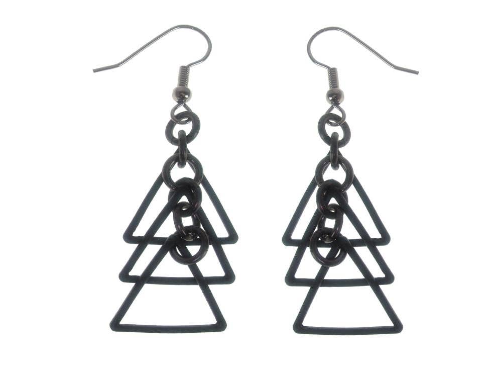 Sagesse, compassion et courage sont les attributs des stupas bouddhistes que nous avons observés à Mustang, au Népal. Ils étaient enchanteurs, construits il y a si longtemps, ont résisté à l'épreuve du temps et ont évolué au gré du vent et de la pluie. Ces éléments sont représentés dans cette boucle d'oreille rectangulaire abstraite de 1 pouce. Si léger que vous oubliez même que vous portez quoi que ce soit. Ces boucles d'oreilles sont fabriquées à partir de chambres à air de vélo recyclées. Ils sont fabriqués sur commande aux États-Unis avec des embouts en acier inoxydable.