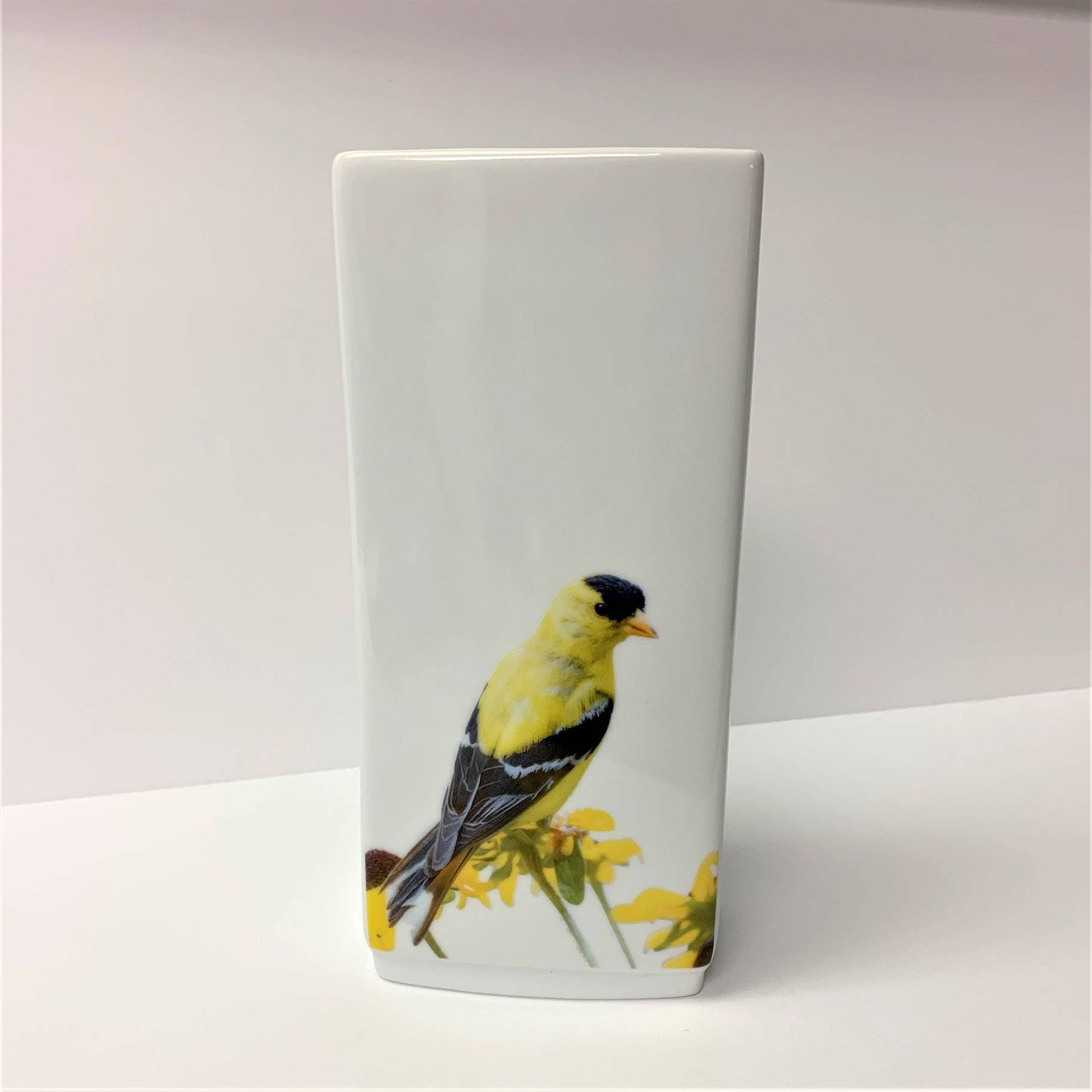 Vase rectangulaire en porcelaine, de design bavarois simple, orné d'une tige de Glaïeul orange de 8 12 po de haut x 3 3/4 po de large.