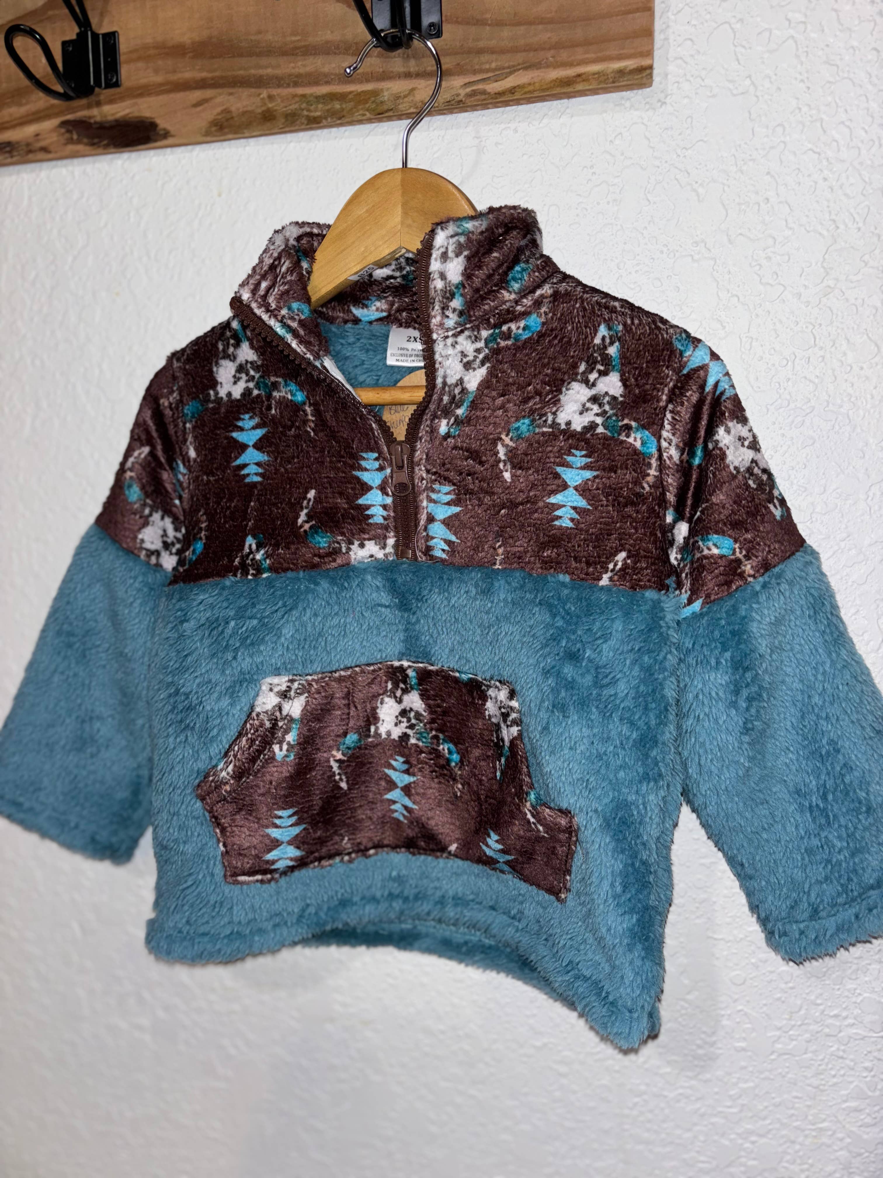 Sherpa et polaire à imprimé aztèque sur un pull-over bleu sarcelle. (WESTERN) TPB50690 AMY