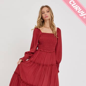 - Mini-robe de Noël en velours jacquard à col en V profond - Robe de soirée confortable - Manches longues en forme de cloche - Couches à plusieurs niveaux - Détail froncé - Avec doublure (Le mannequin mesure 1,80 m, porte une taille S, ratio de taille 2-2-2)