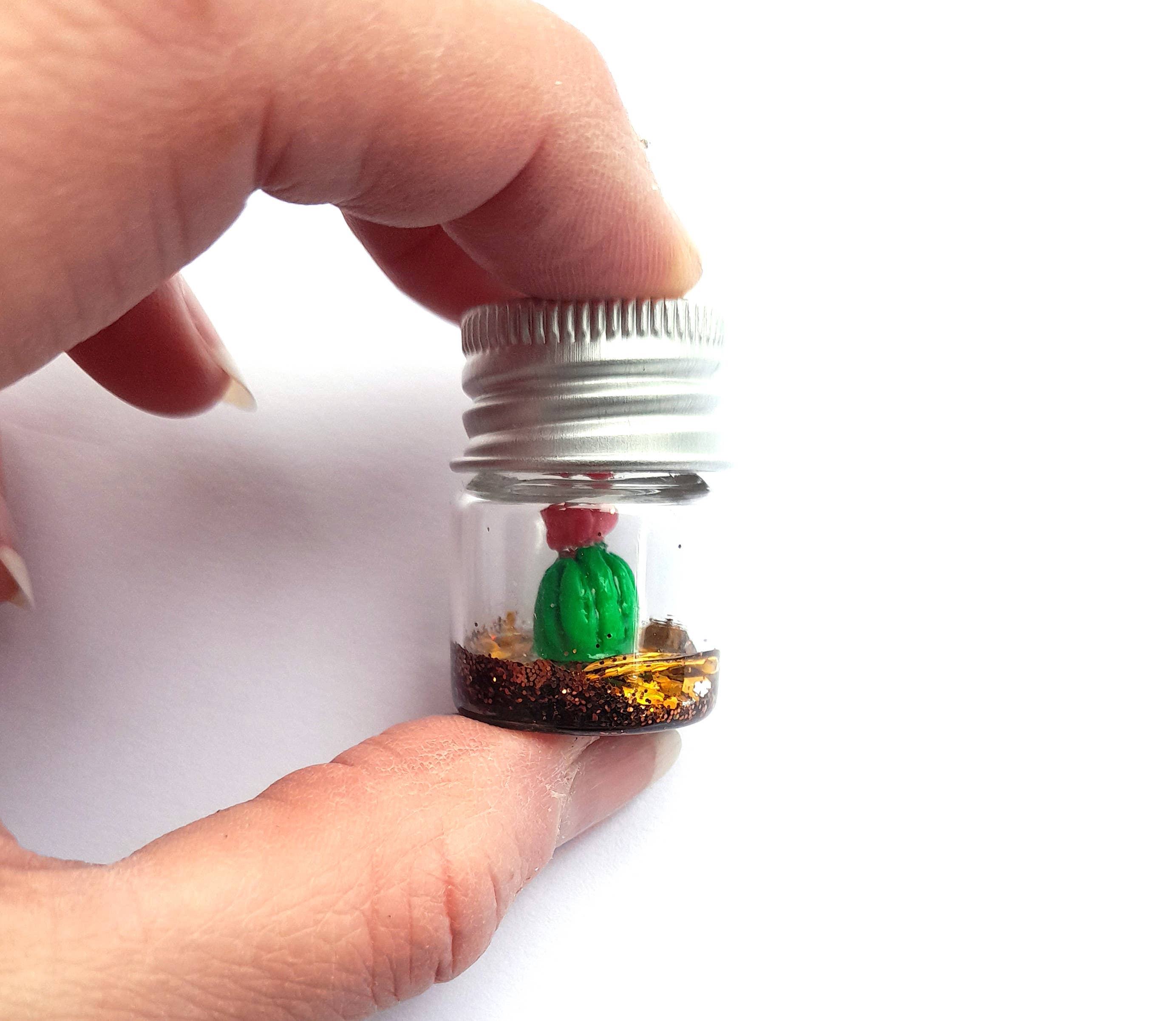 Ces flacons uniques de spécimens de papillons présentent un papillon en 3D dans une mini bouteille en verre. Cette bouteille de nature miniature unique en son genre est un joli cadeau pour les amateurs de miniatures de maisons de poupées ou les passionnés de papillons. La miniature de maison de poupée est idéale pour un jardin féerique, des maisons de poupées, ou comme une pièce d'art miniature à part entière. Vous recevrez une variété de couleurs aléatoires. Cette minuscule bouteille d'identification de papillons mesure 5 ml et fait 22 mm x 30 mm. Toutes les bouteilles sont fabriquées sur commande et peuvent présenter de légères variations en raison de leur nature artisanale.