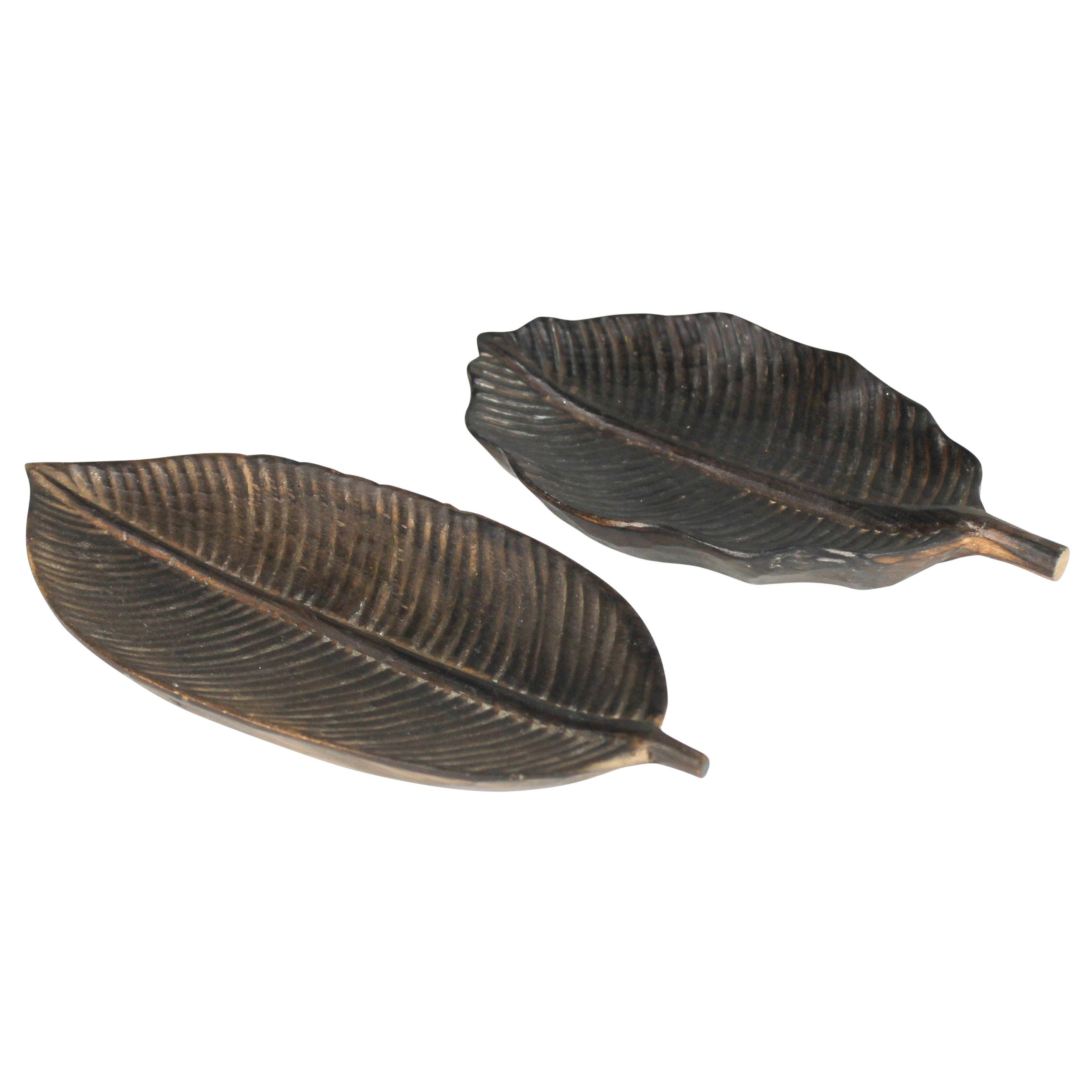 Plateau de service rond en bois avec poignées en forme de branche d'olivier en métal