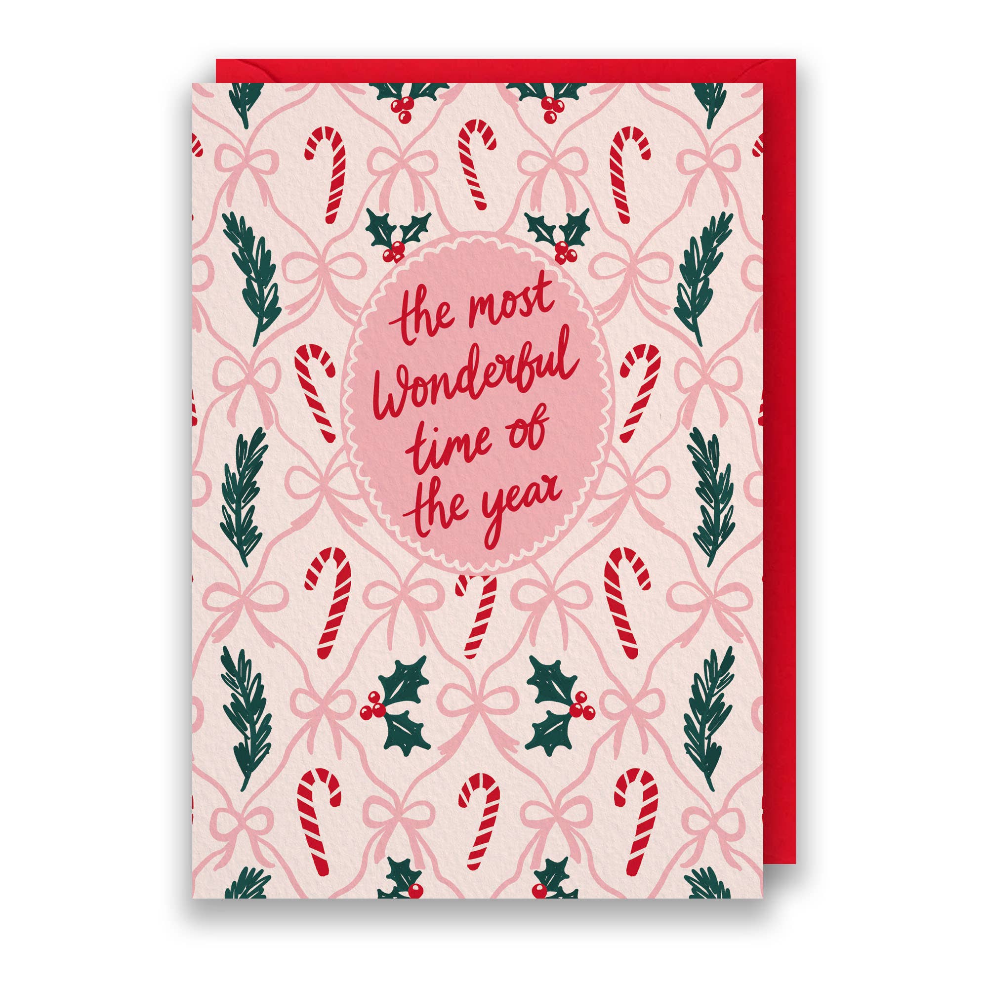 Cette charmante carte de Noël présente une illustration amusante de décorations d'arbre kitsch, y compris un casse-noisette, une canne en sucre d'orge et un verre à martini. Le design contemporain est de taille 5" x 7" avec une enveloppe rouge vif et des détails en feuille d'or. Le lettrage dessiné à la main indique 'Passez un Noël Super Scintillant'. Ce design coloré est sûr de se démarquer avec son fond rose fuchsia et ses étoiles brillantes en feuille d'or. L'illustration tendance en fait une carte parfaite pour les amies ou les adolescentes. * Carte de vœux de taille 5” x 7” avec enveloppe rouge * Arrive nichée et regroupée par 6 avec une bande de papier * Détails imprimés en feuille d'or * Carton certifié FSC * Emballage sans plastique * Illustration originale * Imprimé sur commande au Royaume-Uni