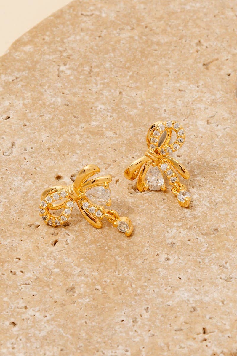 Boucle d'oreille à tige délicate en forme de fraise en or avec pierre baguette en zircone cubique en vente B2B