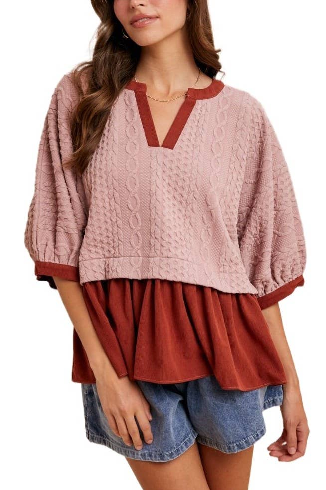 Haut à manches courtes et col en V avec ourlet haut-bas.