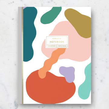 Couverture en tissu peinte à la main avec reliure à spirale de haute qualité. La couverture et le dos sont peints à la main, rendant chaque carnet totalement unique. Caractéristiques - 120 pages avec du papier certifié FSC de 103 g/m². - Couverture durable facile à nettoyer. - Fermeture élastique pour garder vos notes en sécurité. - Poches transparentes pour conserver des notes. - Fait main dans notre studio basé en Iowa. Taille : B5 - 7 x 10" / 177 x 254 mm