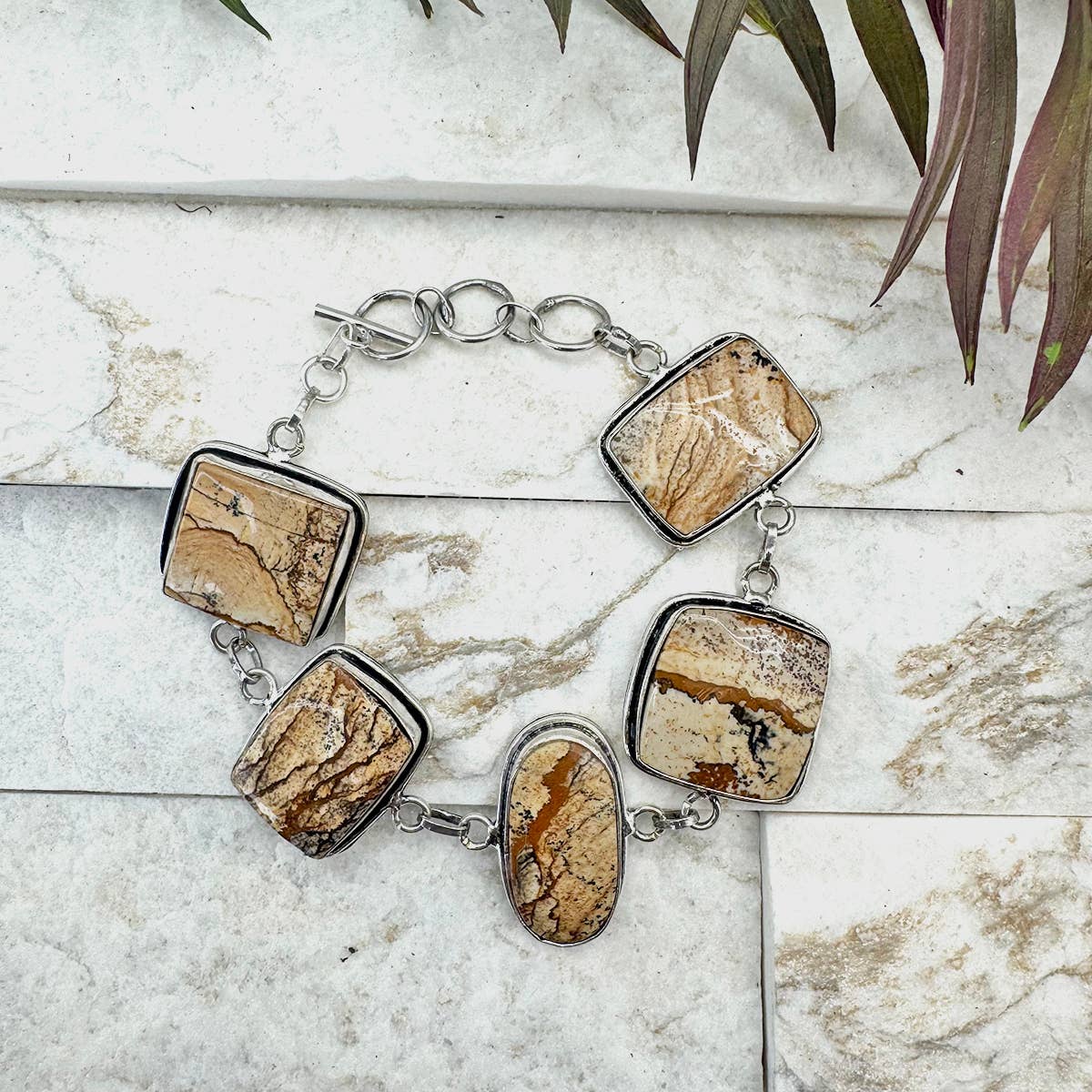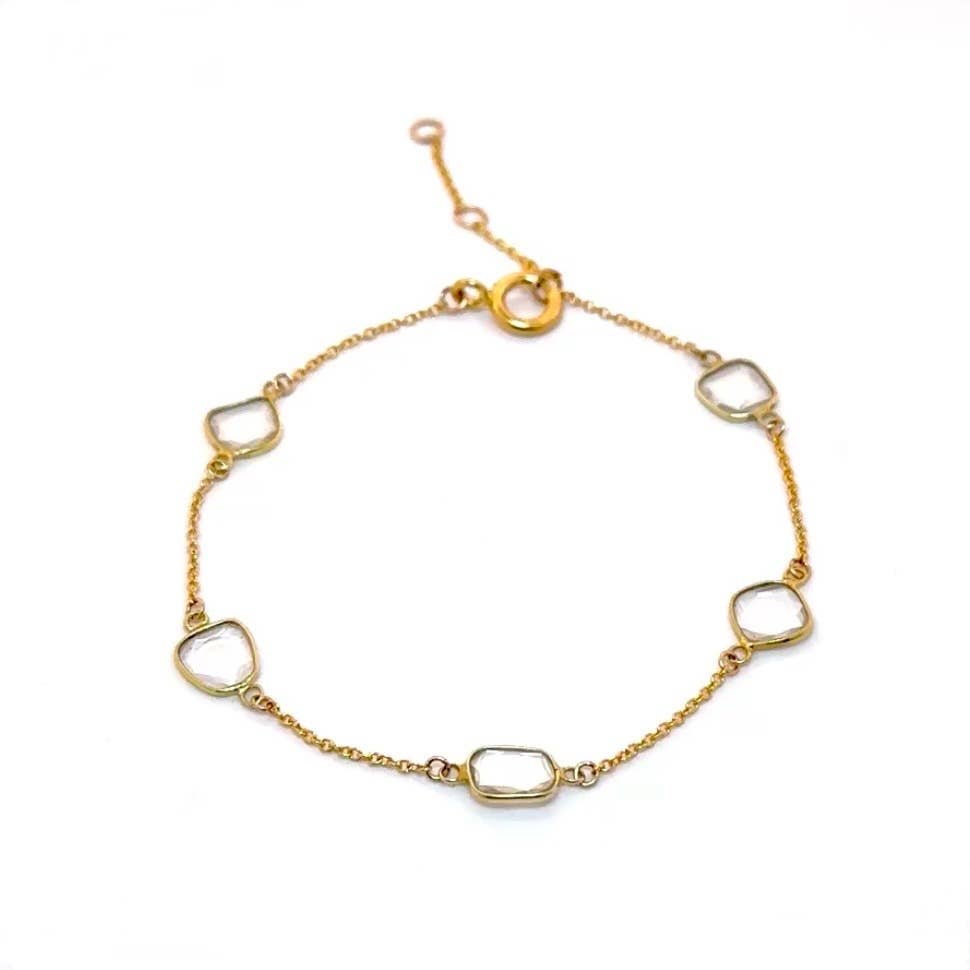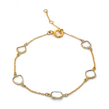 Conçu en France, ce bracelet est orné de 5 magnifiques pierres semi-précieuses en forme de trèfle, créant une pièce unique qui met en valeur l'attachement de la marque aux designs tendance. Que vous vous habilliez pour une occasion spéciale ou que vous ajoutiez une touche de style à votre tenue de tous les jours, ce bracelet est un ajout polyvalent à toute collection de bijoux. Profitez de la beauté de Pretty Persuasions, où des accessoires uniques côtoient les tendances de la mode. Les pierres naturelles varient en termes de motif, de texture et de couleur. Ces différences et disparités font partie de ce qui rend la pierre unique et belle, et ne doivent pas être considérées comme des défauts.