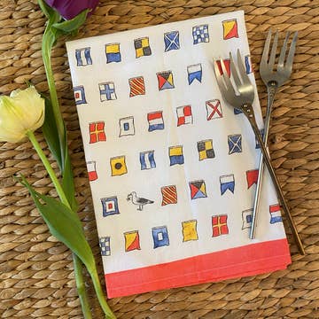 Enroulez-le autour d'une bouteille d'eau ou de vin en verre pour votre table ou comme cadeau d'hôtesse. Attachez-le à un panier de pique-nique pour un pique-nique l'après-midi. Ou, si c'est pratique, accrochez-le à la poignée de votre four et séchez vos mains et votre vaisselle avec le toucher doux de la vie lacustre. Serviette de sac en coton 15 x 25 avec nos icônes préférées de la vie lacustre en rouge. Laver à la machine à froid avec des couleurs similaires. Séchage au sèche-linge à basse température. Fabriqué aux États-Unis. Essuie-mains d'été Essuie-mains pour le nord. décoration de cabine. Décoration de chalet. Décoration de maison sur le lac. La vie lacustre. L'amour du lac. Camping. Nature. Plein air. Navigation. Nautique. Voile. Lions. Ancre. Voilier. Bouée. Bateau artisanal Chris. Drapeaux nautiques, drapeaux à voile, rames, pagaies. Chaises Adirondack, feu de joie.