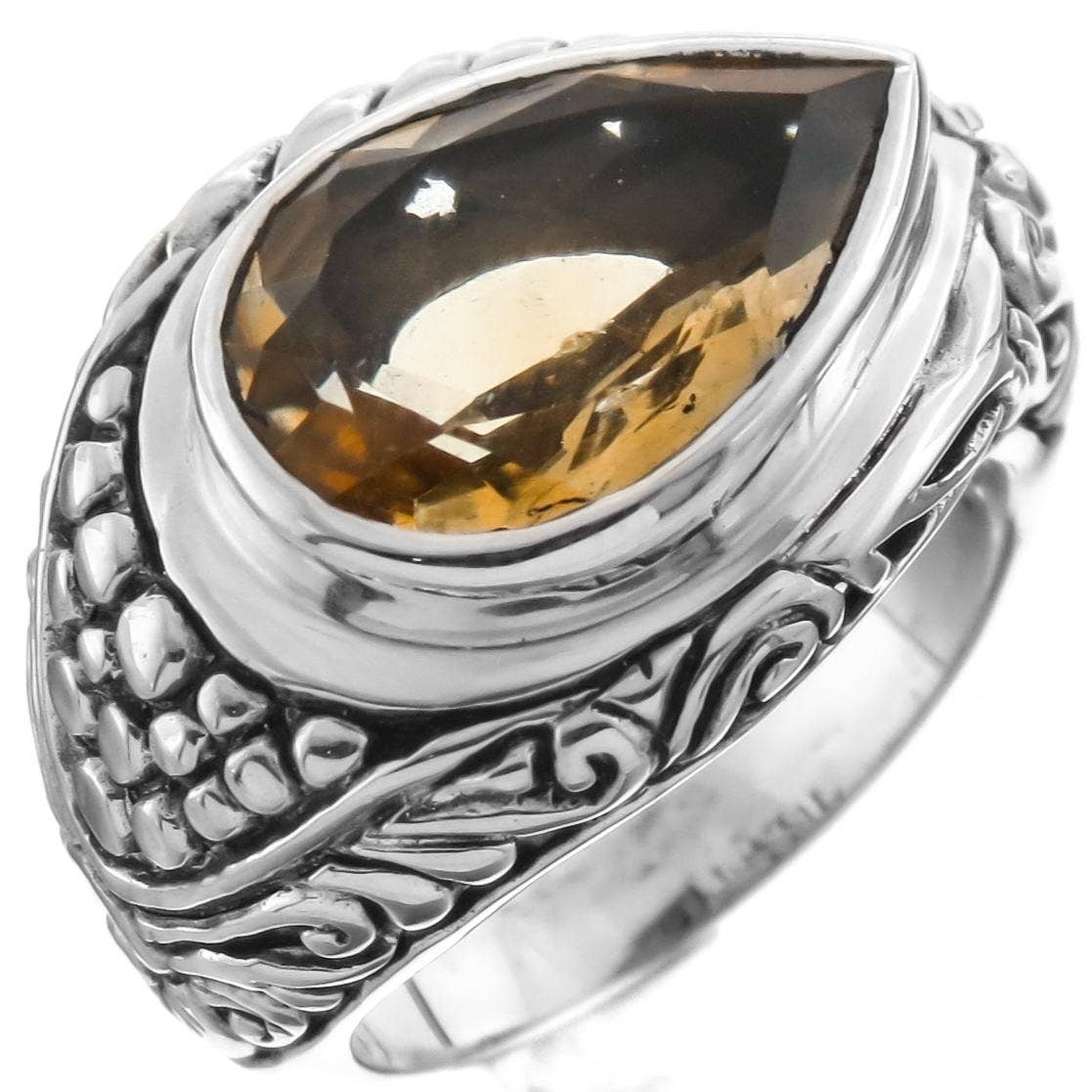 Bague en argent sterling et ambre cognac