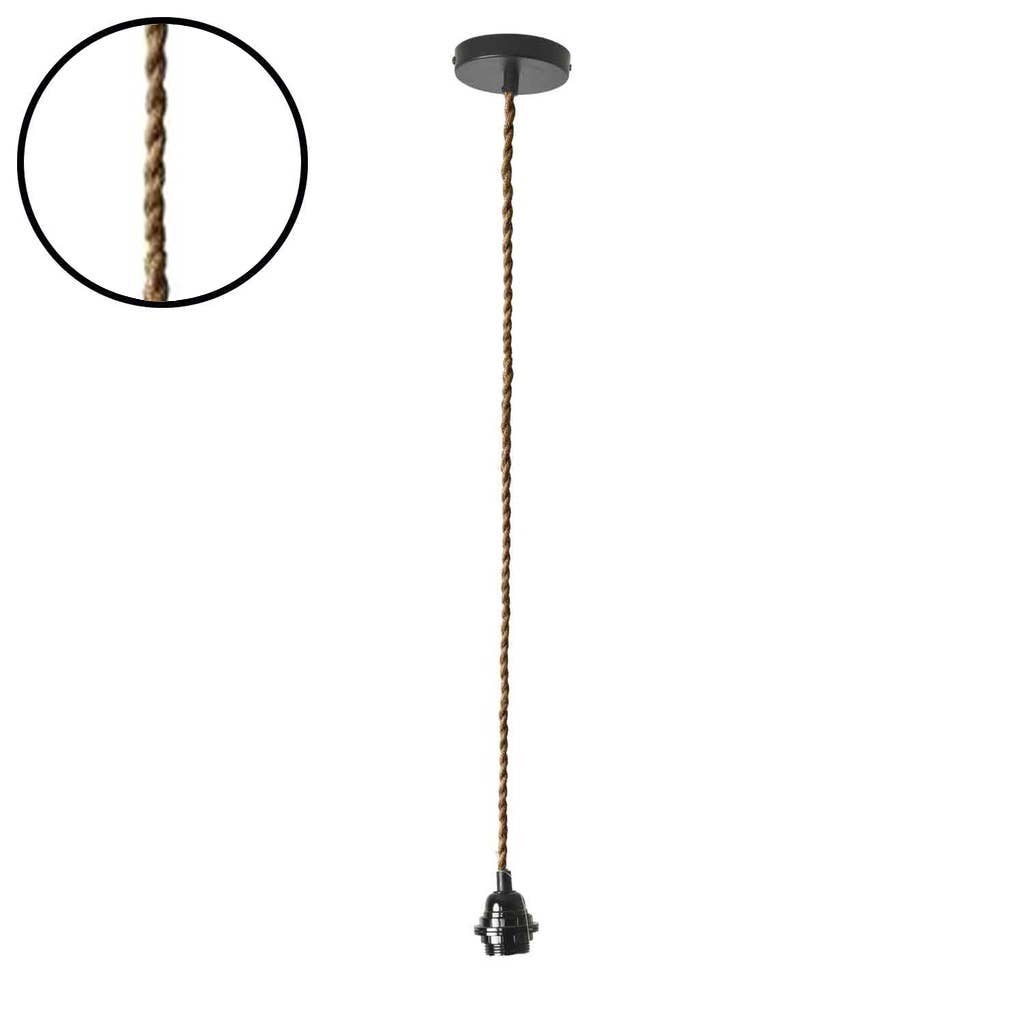 Suspension douille baladeuse noire 300cm câble torsadé corde naturelle prise en vente B2B