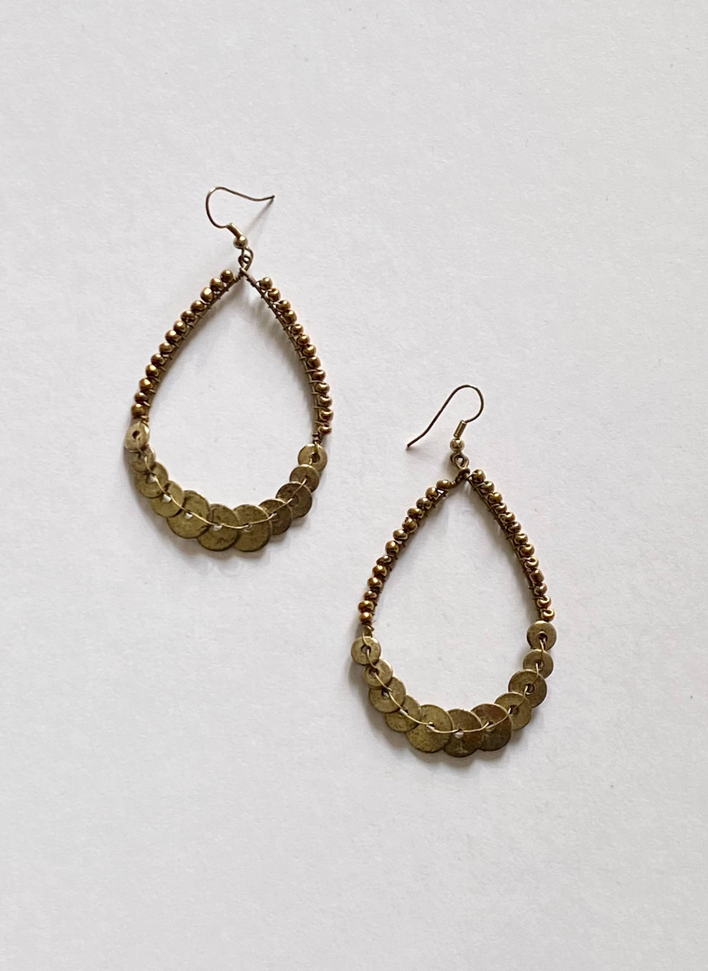 Boucles d'oreilles ethniques en forme de demi-lune, ornées de perles à facettes colorées et dorées. Cette paire de boucles d'oreilles est confectionnée de façon artisanale et garantie sans nickel. Ce bijou fantaisie est une pièce unique pouvant présenter quelques irrégularités. Vous pouvez les nettoyer avec un chiffon doux. Tout contact avec un liquide peut endommager ce bijou. Diamètre : 5,5 cm