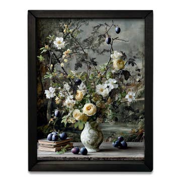 Art floral foncé vintage rond de 8 po